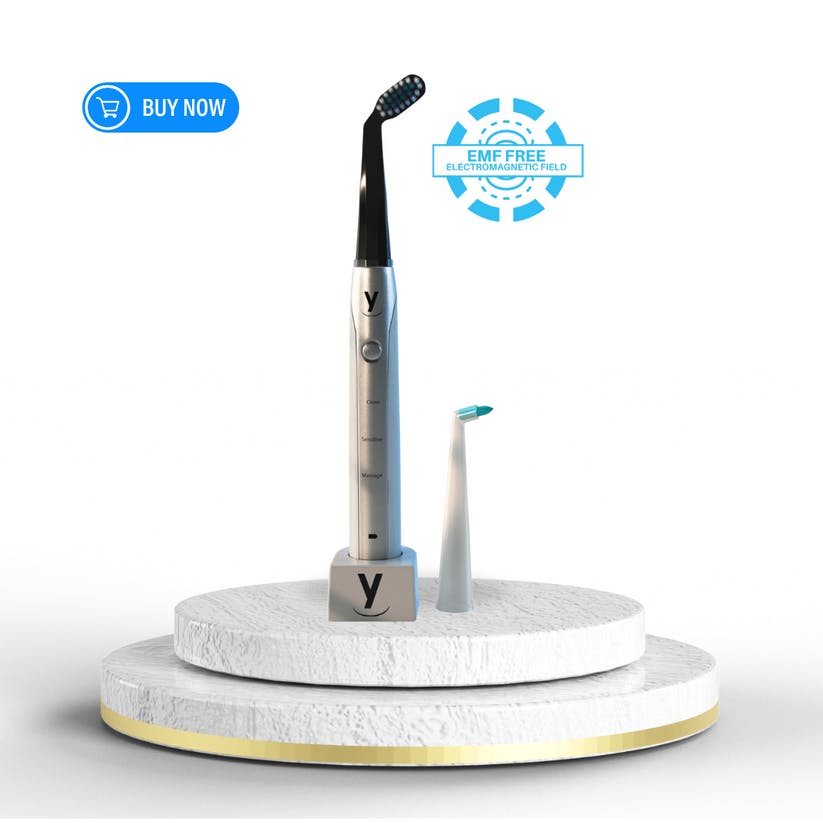 The angled brush gets plaque like nothing else, and the fluoride-free toothpaste gives me peace of mind. Love that it's EMF-free too. The whole family uses this combo now.